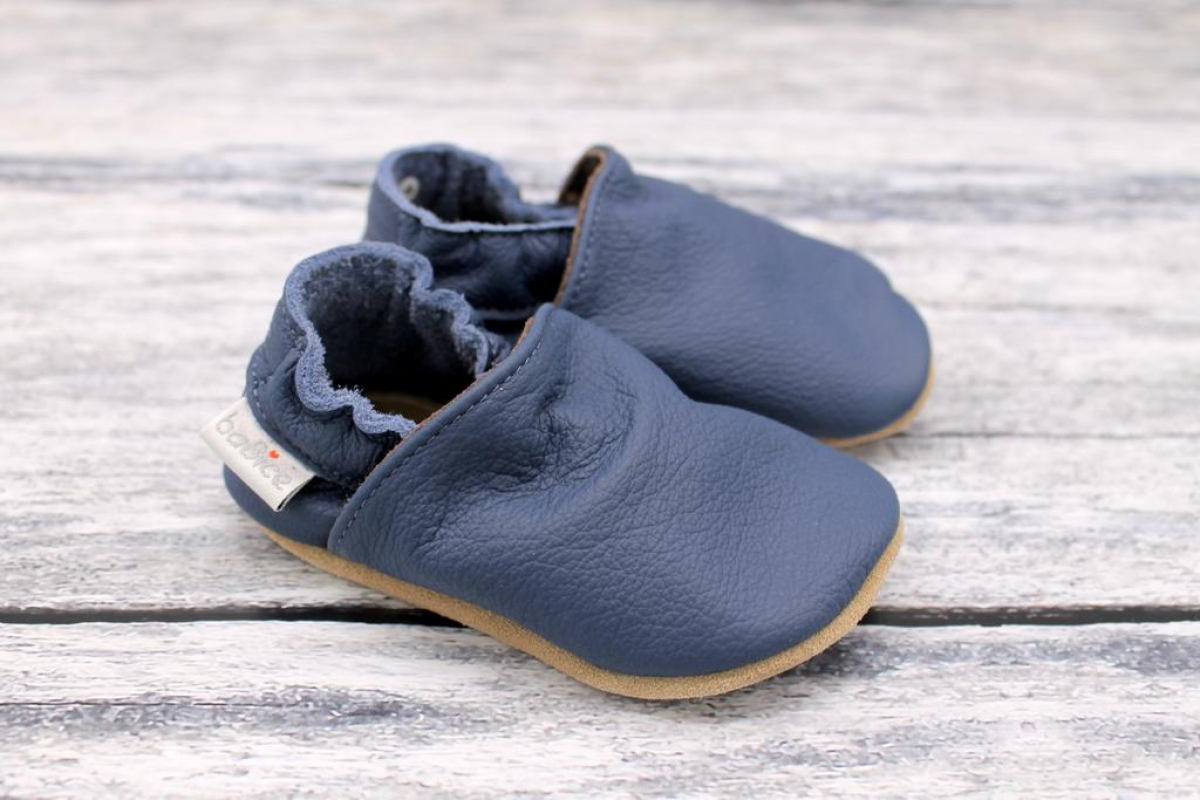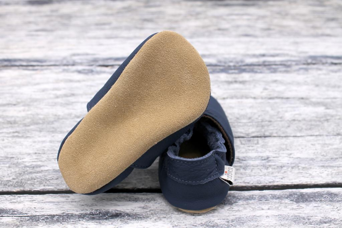 Ručně vyráběné capáčky z kvalitní a měkké kůže. Tato kůže je prodyšná, capáčky mají anatomický tvar špičky, jsou vhodné i pro dominantní palečky. Jsou vhodné pro normální nožky, spodní část je semišová. Vhodné spíše do interiéru, venku se brzy poškodí (oderou, v mokru tvrdnou).
