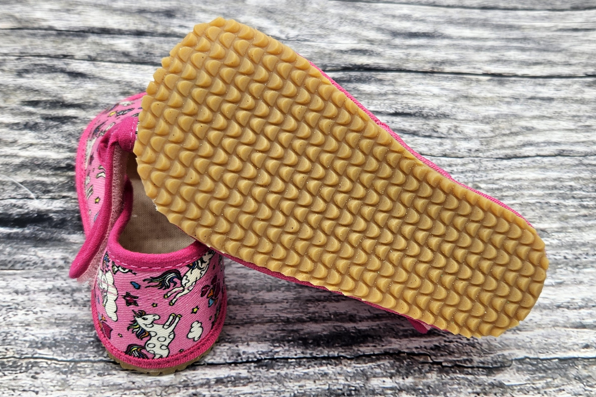 Přezůvky mají krásný prostor pro prsty, jsou měkké a ohebné, mají gumovou podrážku. Pata je vyztužená, ale není tvrdá. Bačkůrky jsou bez podpatku, textilní stélka je rovná, lze ji vyjmout.