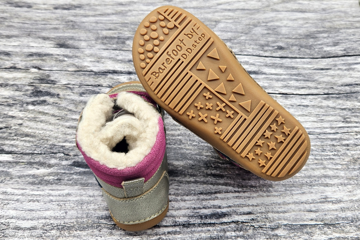 Kožená barefoot obuv vhodná pro průměrné až širší nožky, je měkká hned od počátku nošení. Boty mají praktické přetažení gumy přes špičku. Zapínání na dva suché zipy pro lepší dotažení. Anatomický tvar špičky, vhodné i pro vyšší nárt. Botky NEJSOU vhodné pro kombinaci nízkého nártu a drobného kotníčku.
