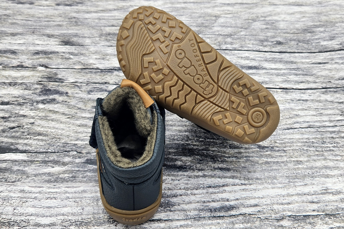 Barefootové vyšší zimní celokožené boty S MEMBRÁNOU chorvatského výrobce Froddo, šité s důrazem na zdraví a přírodu. Anatomicky tvarovaná špička, vhodný tvar pro dominantní palečky, mírně zpevněná pata. Z přírodní hladké Nappa kůže, pro normalní až širší nožky, nižší až normální nárt. Obuv má vlněnou podšívku. Stélka je rovná, nelze ji vyjmout. Sedí dobře úzkým kotníkům.