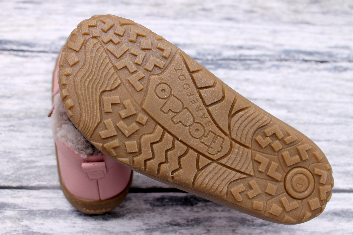 Barefootové kotníkové celokožené zimní boty chorvatského výrobce Froddo na INOVOVANÉ PODRÁŽCE. Boty jsou šité s důrazem na zdraví a přírodu. Anatomicky tvarovaná špička, vhodný tvar pro dominantní palečky, mírně zpevněná pata. Z přírodní hladké Nappa kůže, pro normalní až trošku širší nožky, nižší až normální nárt. Zateplené jemným kožíškem - Sheepskin. Stélka je rovná, nelze ji vyjmout. Sedí dobře úzkým kotníkům.