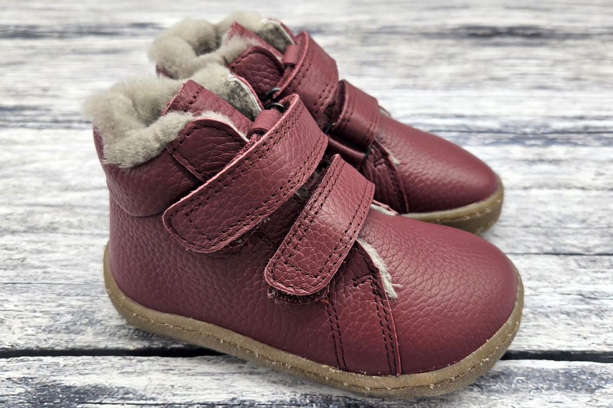 Barefootové kotníkové celokožené zimní boty chorvatského výrobce Froddo na protiskluzové podrážce. Boty jsou šité s důrazem na zdraví a přírodu. Anatomicky tvarovaná špička, vhodný tvar pro dominantní palečky, mírně zpevněná pata. Z přírodní hladké Nappa kůže, pro normalní až trošku širší nožky, nižší až normální nárt. Zateplené jemným kožíškem - Sheepskin. Stélka je rovná, nelze ji vyjmout. Sedí dobře úzkým kotníkům.
