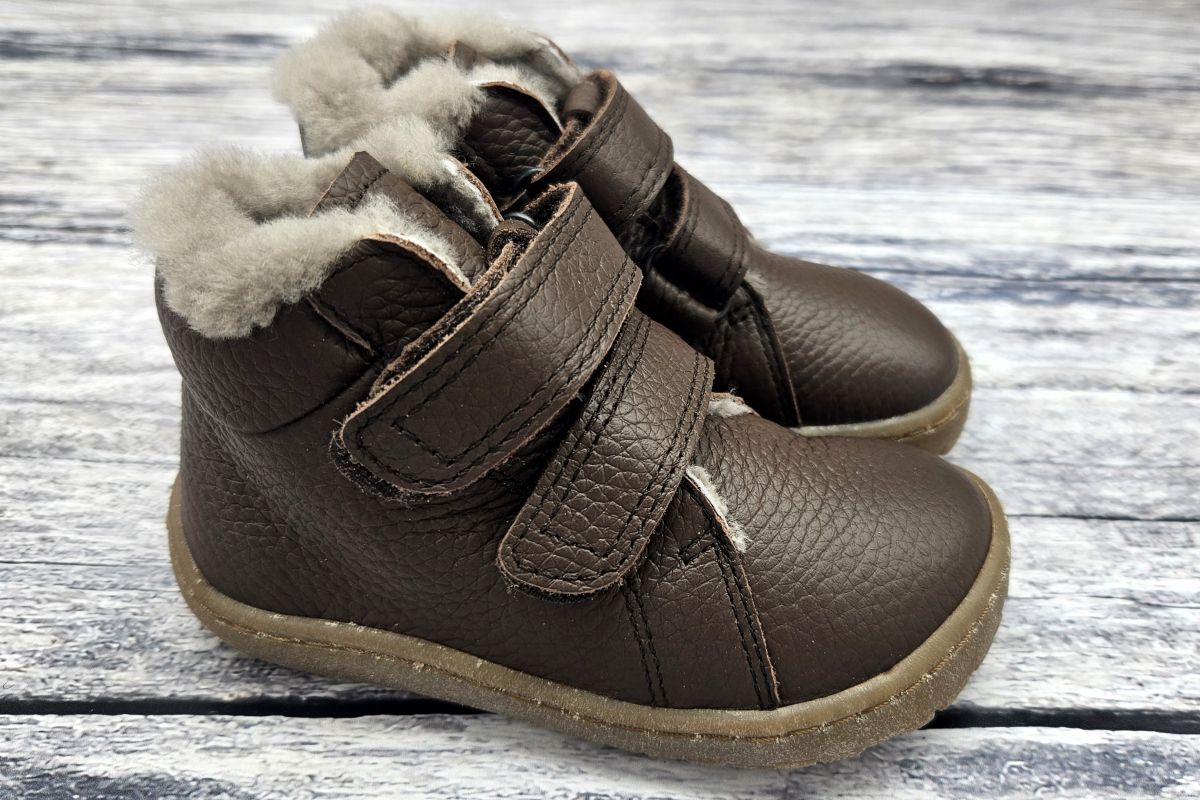 Barefootové kotníkové celokožené zimní boty chorvatského výrobce Froddo na protiskluzové podrážce. Boty jsou šité s důrazem na zdraví a přírodu. Anatomicky tvarovaná špička, vhodný tvar pro dominantní palečky, mírně zpevněná pata. Z přírodní hladké Nappa kůže, pro normalní až trošku širší nožky, nižší až normální nárt. Zateplené jemným kožíškem - Sheepskin. Stélka je rovná, nelze ji vyjmout. Sedí dobře úzkým kotníkům.