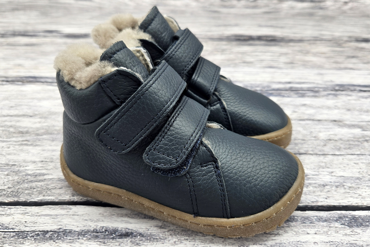 Barefootové kotníkové celokožené zimní boty chorvatského výrobce Froddo na protiskluzové podrážce. Boty jsou šité s důrazem na zdraví a přírodu. Anatomicky tvarovaná špička, vhodný tvar pro dominantní palečky, mírně zpevněná pata. Z přírodní hladké Nappa kůže, pro normalní až trošku širší nožky, nižší až normální nárt. Zateplené jemným kožíškem - Sheepskin. Stélka je rovná, nelze ji vyjmout. Sedí dobře úzkým kotníkům.