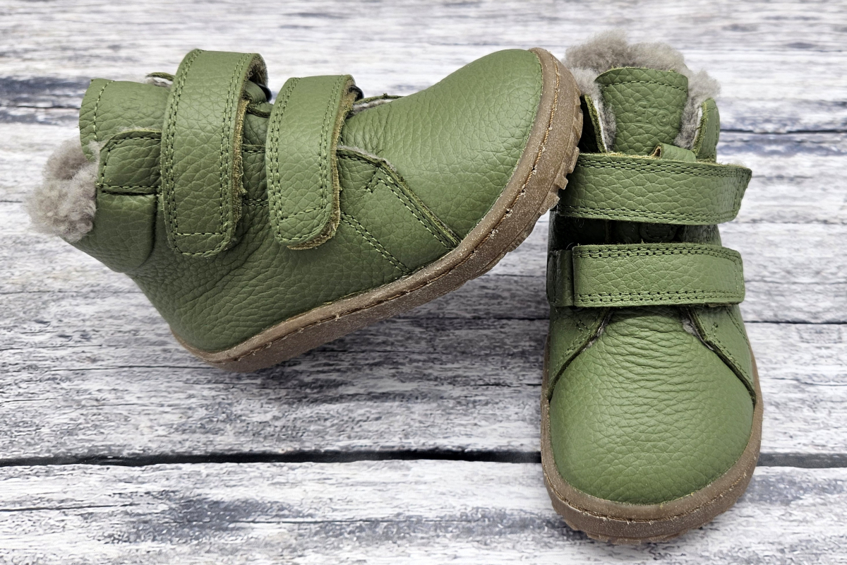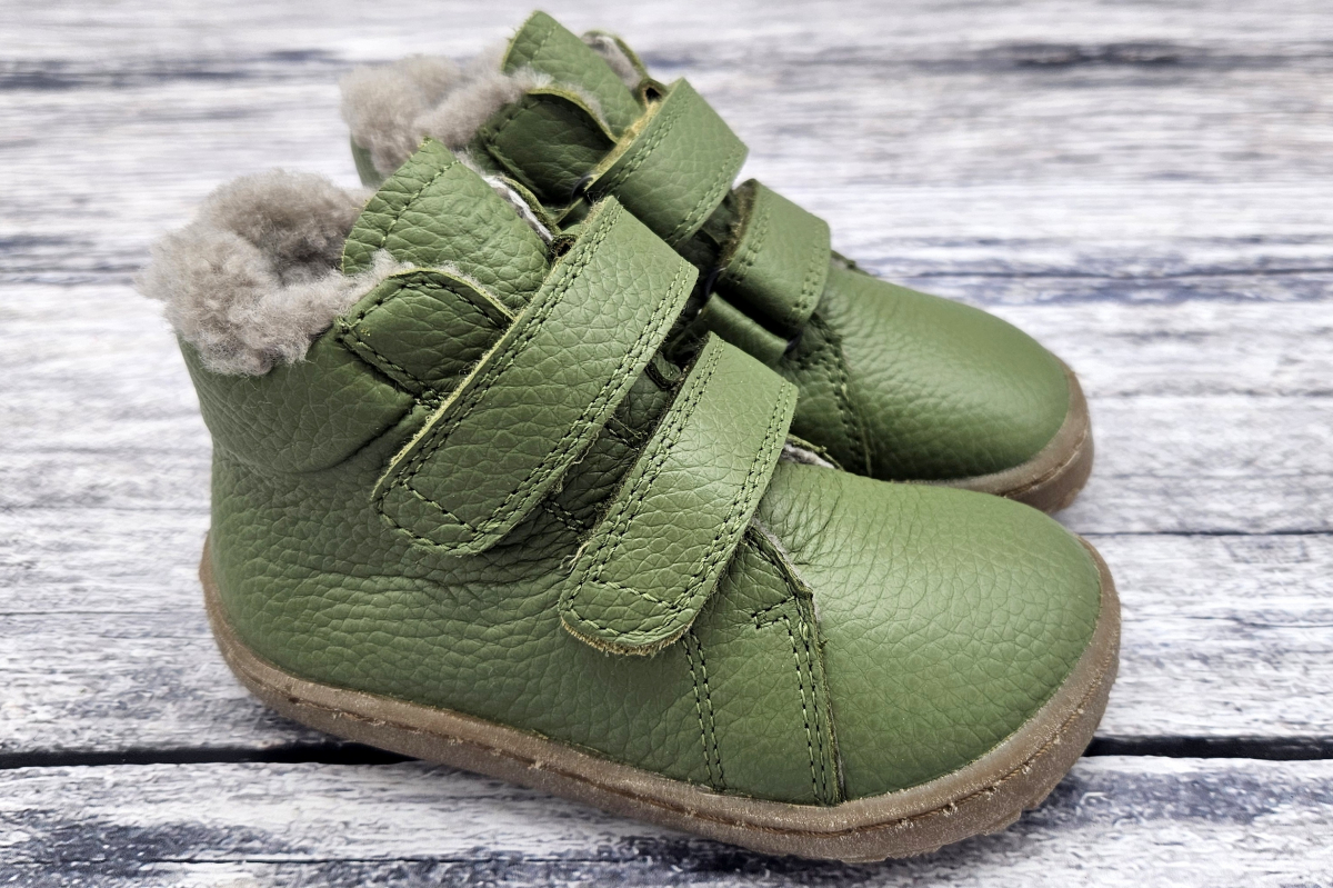 Barefootové kotníkové celokožené zimní boty chorvatského výrobce Froddo na protiskluzové podrážce. Boty jsou šité s důrazem na zdraví a přírodu. Anatomicky tvarovaná špička, vhodný tvar pro dominantní palečky, mírně zpevněná pata. Z přírodní hladké Nappa kůže, pro normalní až trošku širší nožky, nižší až normální nárt. Zateplené jemným kožíškem - Sheepskin. Stélka je rovná, nelze ji vyjmout. Sedí dobře úzkým kotníkům.