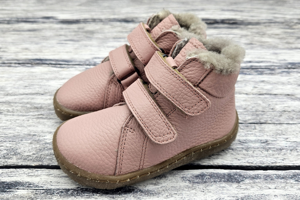 Barefootové kotníkové celokožené zimní boty chorvatského výrobce Froddo na protiskluzové podrážce. Boty jsou šité s důrazem na zdraví a přírodu. Anatomicky tvarovaná špička, vhodný tvar pro dominantní palečky, mírně zpevněná pata. Z přírodní hladké Nappa kůže, pro normalní až trošku širší nožky, nižší až normální nárt. Zateplené jemným kožíškem - Sheepskin. Stélka je rovná, nelze ji vyjmout. Sedí dobře úzkým kotníkům.