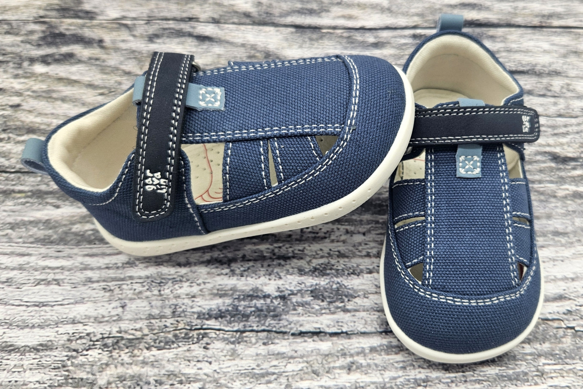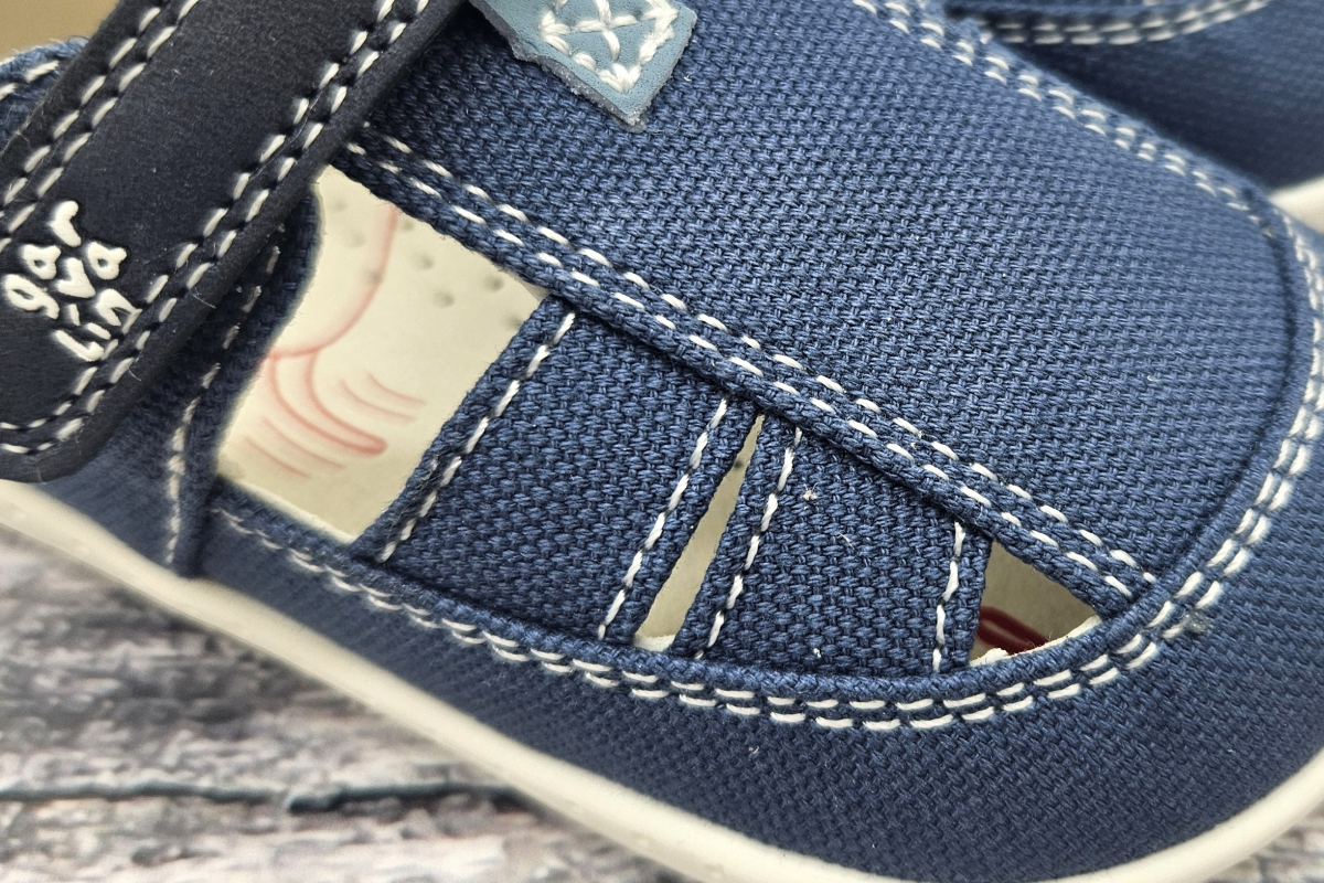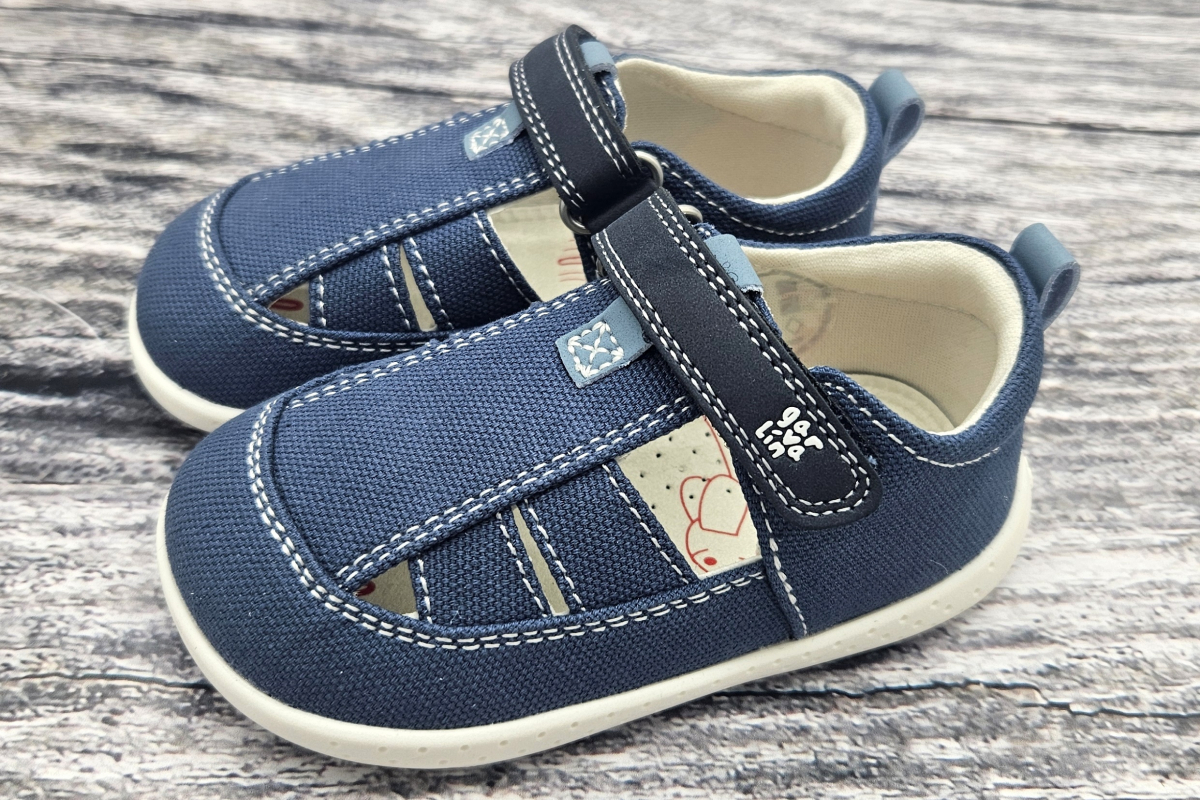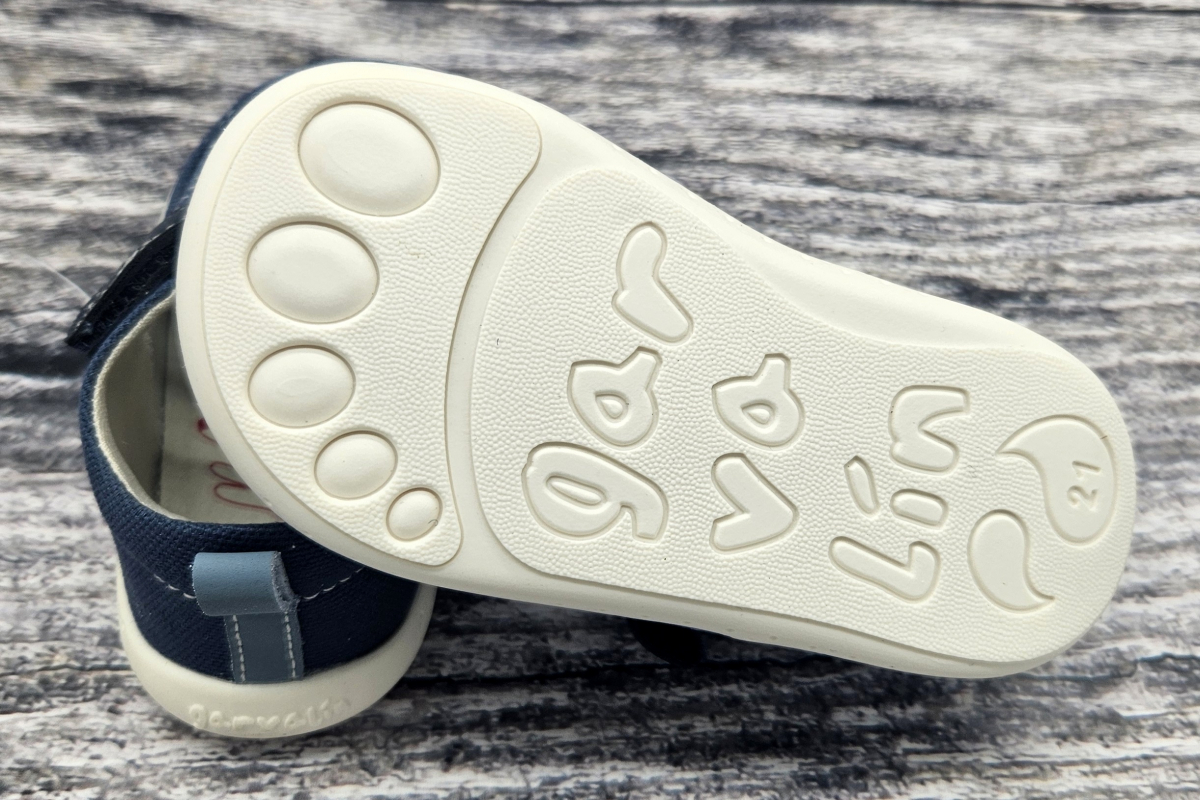 Letní textilní barefootové botky, které jsou vhodné i pro začínající chodce. Podrážka je měkká a ohebná, pata úplně lehce zpevněná.