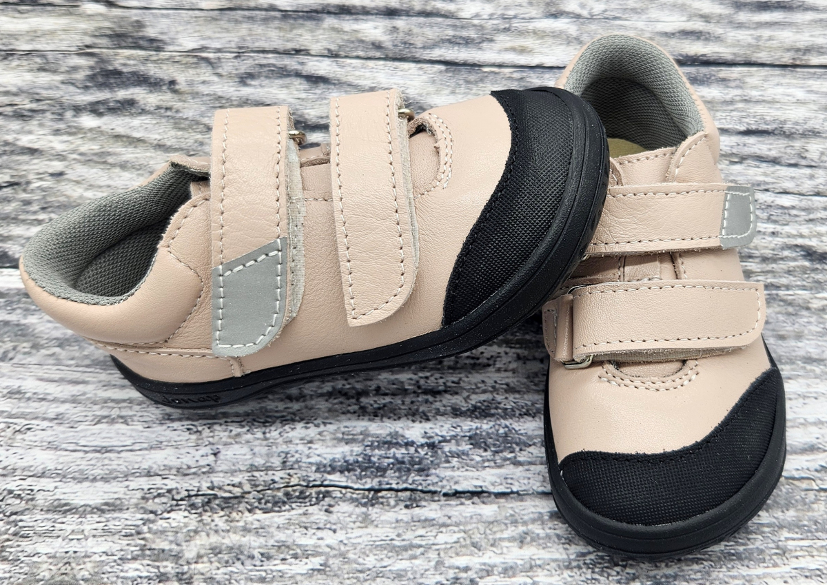 Suchý zip disponuje reflexním prvkem pro lepší bezpečnost našich dětí. Okopový pásek z broušené kůže