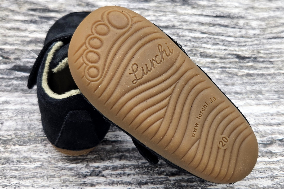 Měkké barefoot capáčky pro první krůčky. Kvalitní botky německé značky LURCHI vyrobené z broušené kůže. Jsou vhodné na průměrnou nožku s normálním až vyšším nártem. Anatomicky tvarovaná špička, boty jsou tak vhodné také pro mírně dominantní paleček. Bez zvýšené a zpevněné paty, botky mají praktický okop.