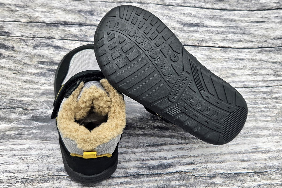 Barefootové zimní boty slovenského výrobce. Podrážka je zpočátku tužší, nošením krásně změkne. Anatomický tvar špičky, pata je trošku pevnější.