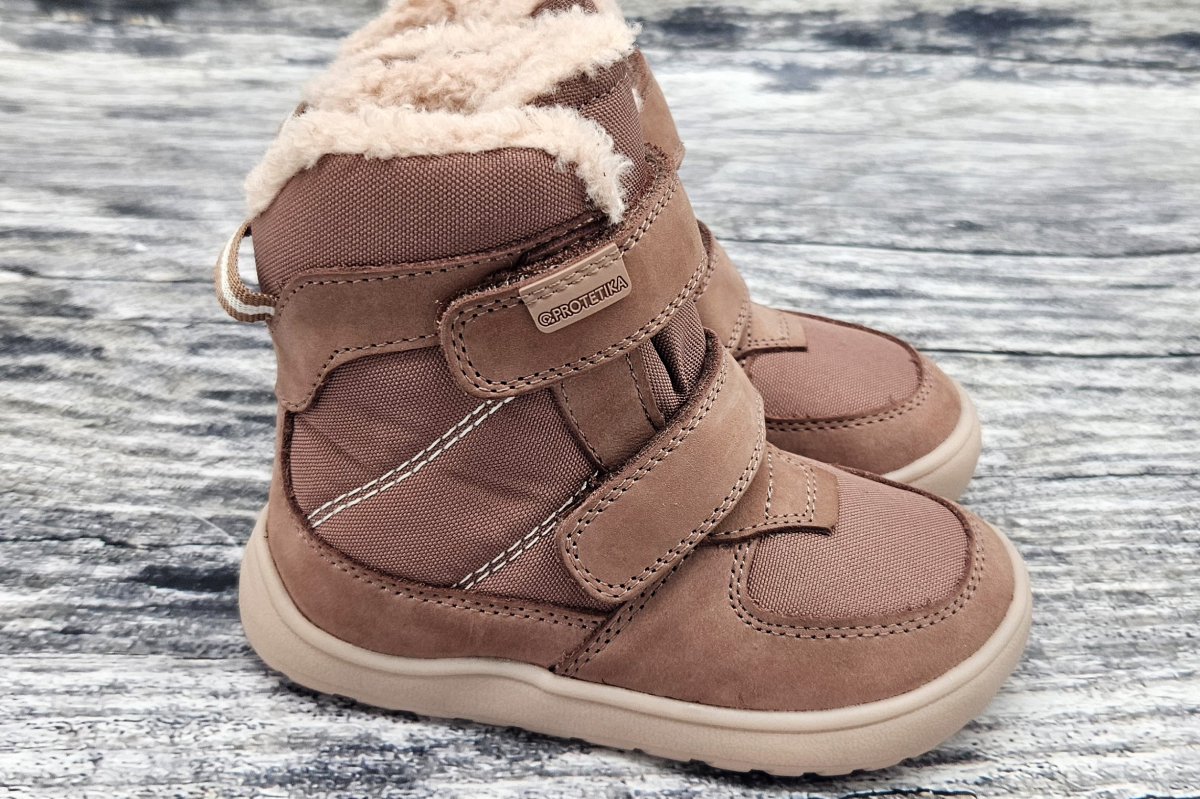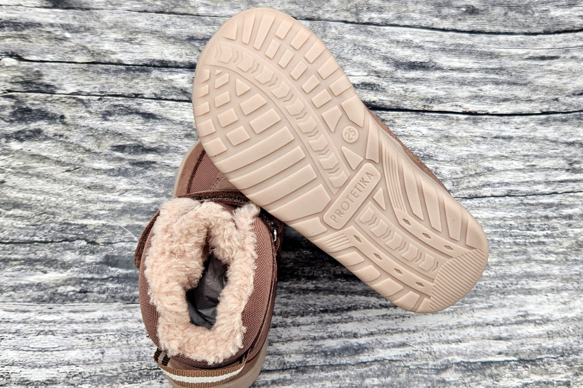 Barefootové zimní boty slovenského výrobce. Podrážka je zpočátku tužší, nošením krásně změkne. Anatomický tvar špičky, pata je trošku pevnější.