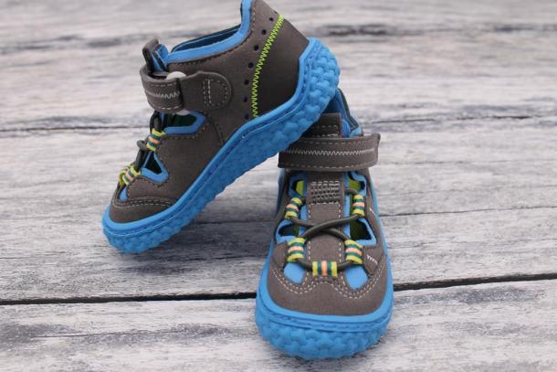 Barefoot sandálky pro drobné nožky. Botičky jsou lehké, krásně ohebné. Dobré dotažení kolem kotníků díky suchému zipu. Malinko zpevněná pata. Praktický přesah gumy přes okraj boty - ochrana proti okopání i vlhku.